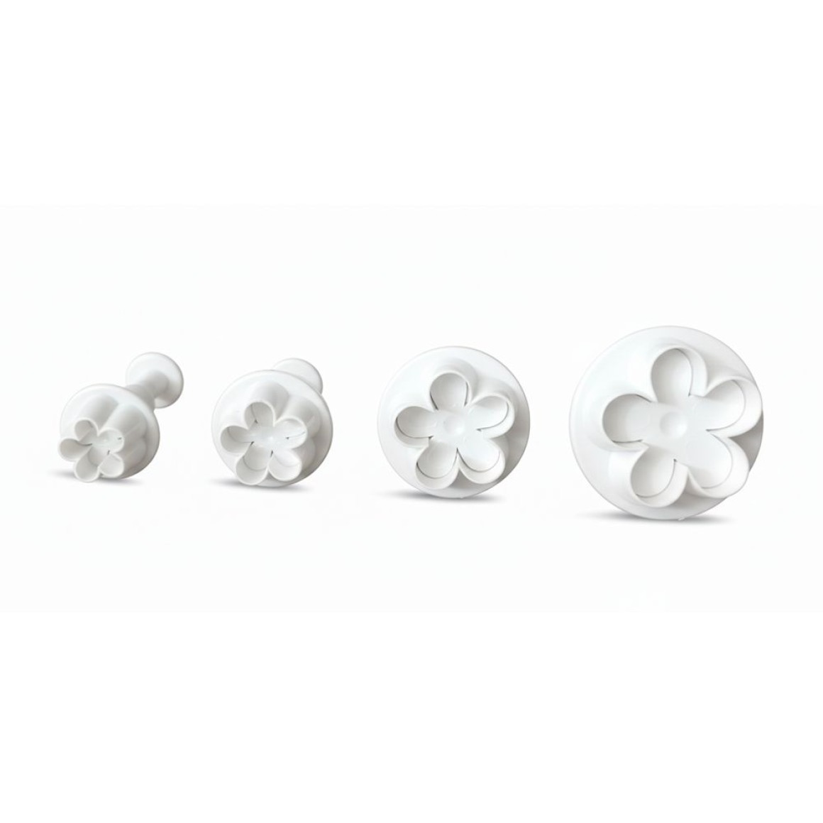 Os ejetores em formato de flor de cerejeira são perfeitos para cortar e marcar massas de biscoito, pasta americana ou biscuit com precisão e charme.